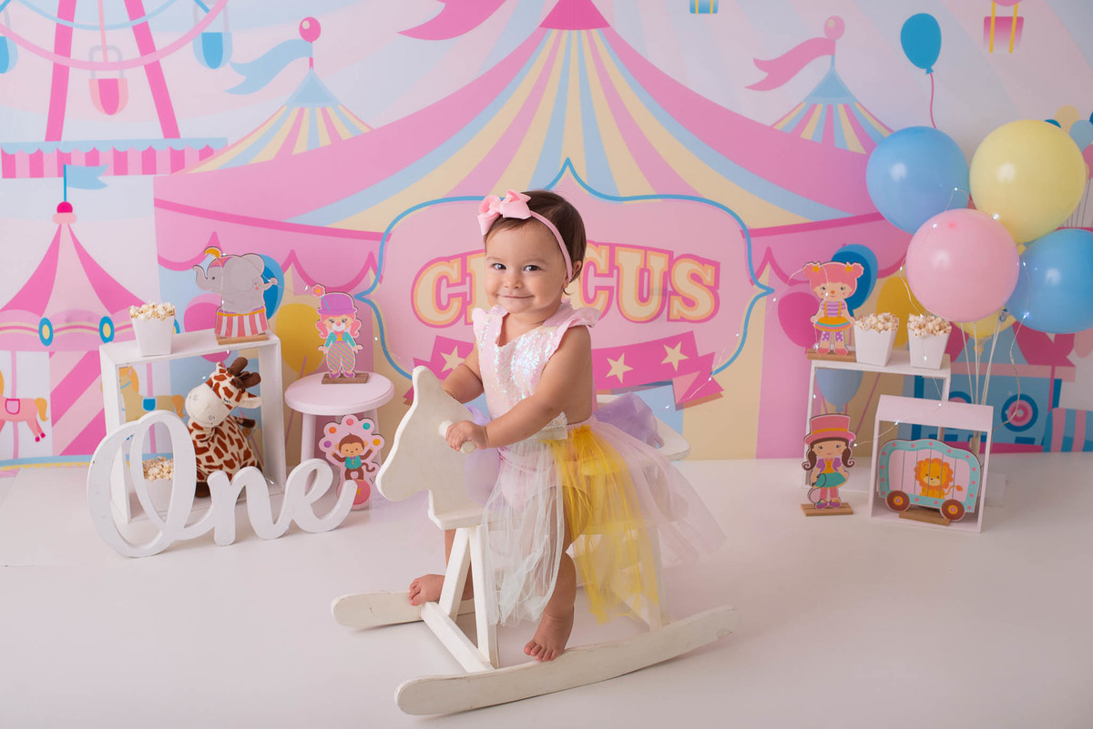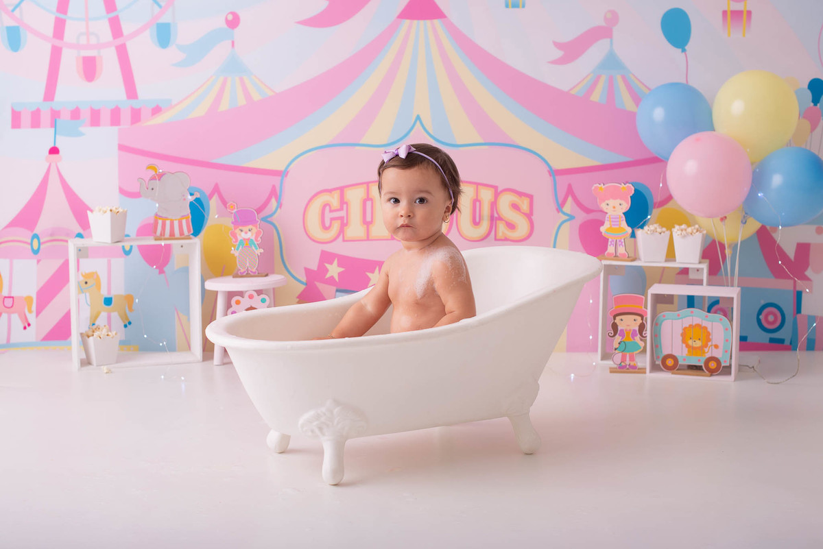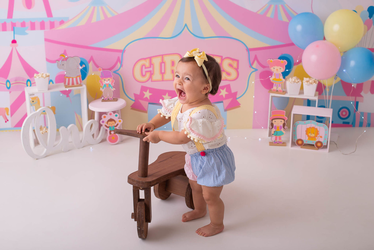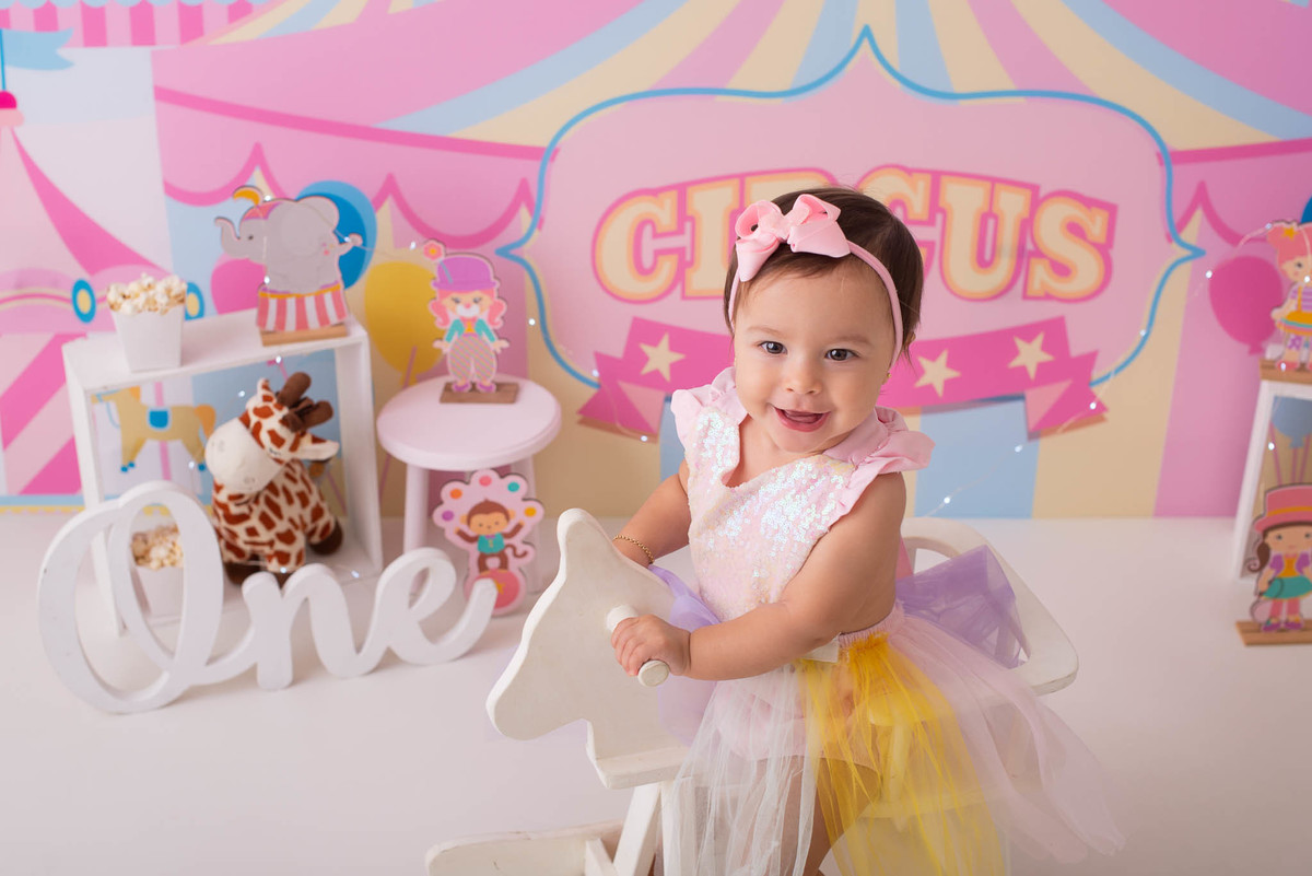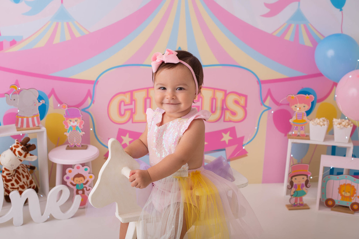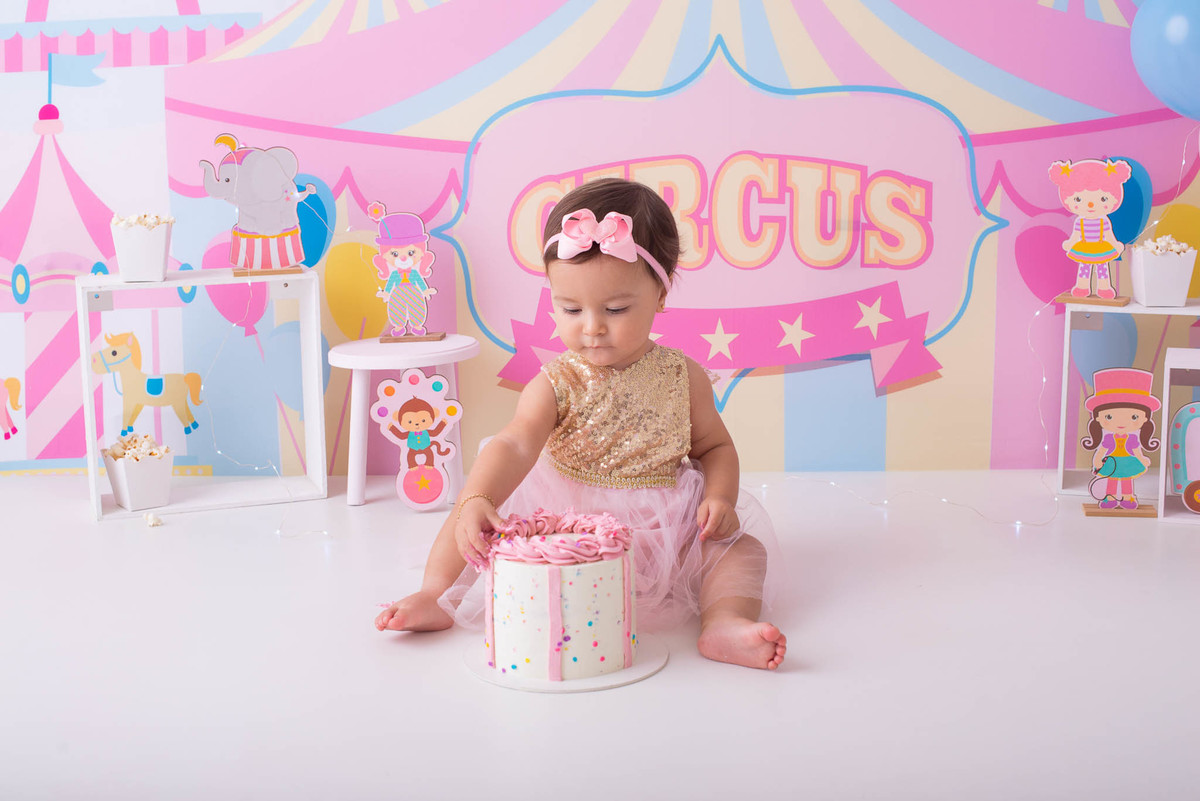 O ensaio fotográfico de 1 ano se chama Smash the caker, a mamãe da Maitê escolheu o tema circo rosa, aqui no estúdio oferecemos o cenário, o figurino e o bolo, também fazemos fotos do bebê com a família, e depois do bolo tem o banho, geralmente esse ensaio leva 1h, os irmãos são muito bem vindos no nosso estúdio e são tratados com muito carinho, o resultado são fotos linda de muita qualidade, uma recordação para a vida toda.
