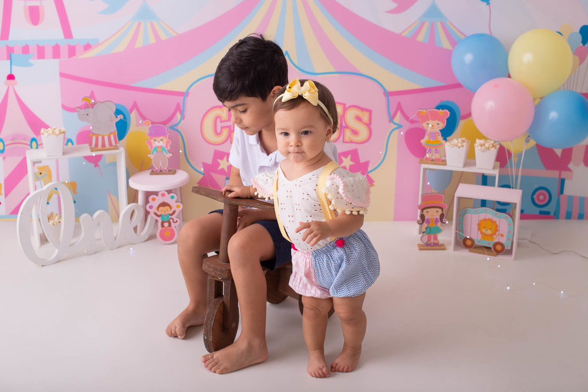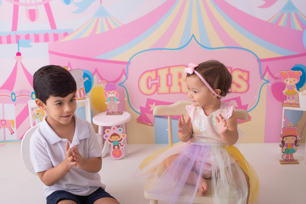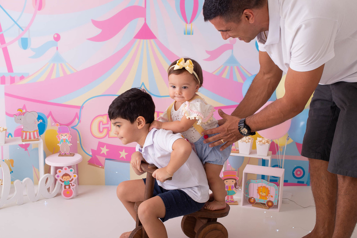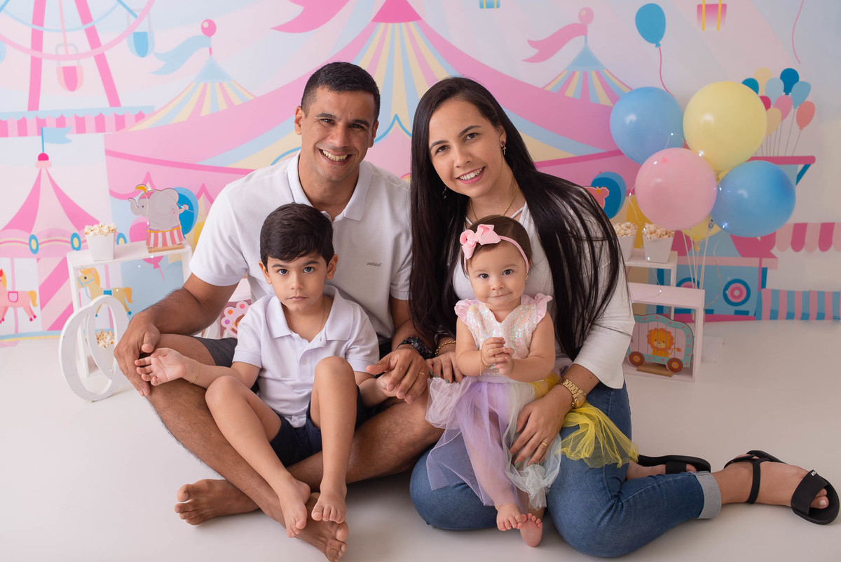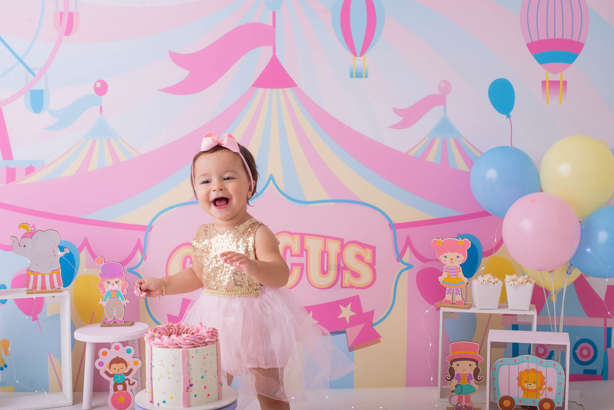 O ensaio fotográfico de 1 ano se chama Smash the caker, a mamãe da Maitê escolheu o tema circo rosa, aqui no estúdio oferecemos o cenário, o figurino e o bolo, também fazemos fotos do bebê com a família, e depois do bolo tem o banho, geralmente esse ensaio leva 1h, os irmãos são muito bem vindos no nosso estúdio e são tratados com muito carinho, o resultado são fotos linda de muita qualidade, uma recordação para a vida toda.